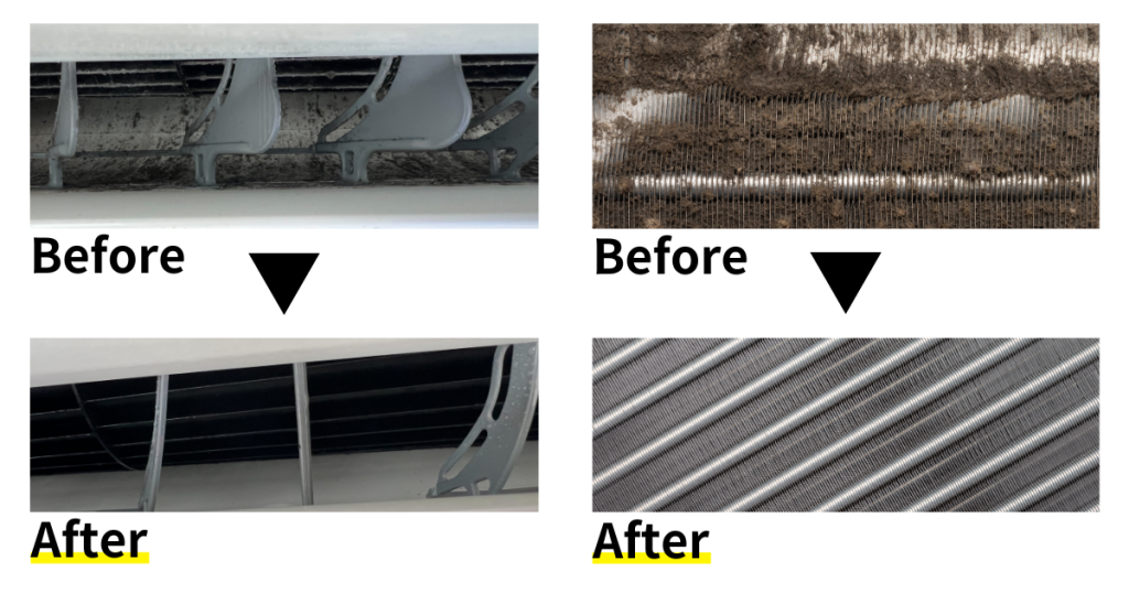 新品のエアコンでも半年から1年使用すれば、カビを中心とした汚れが溜まっていきます。