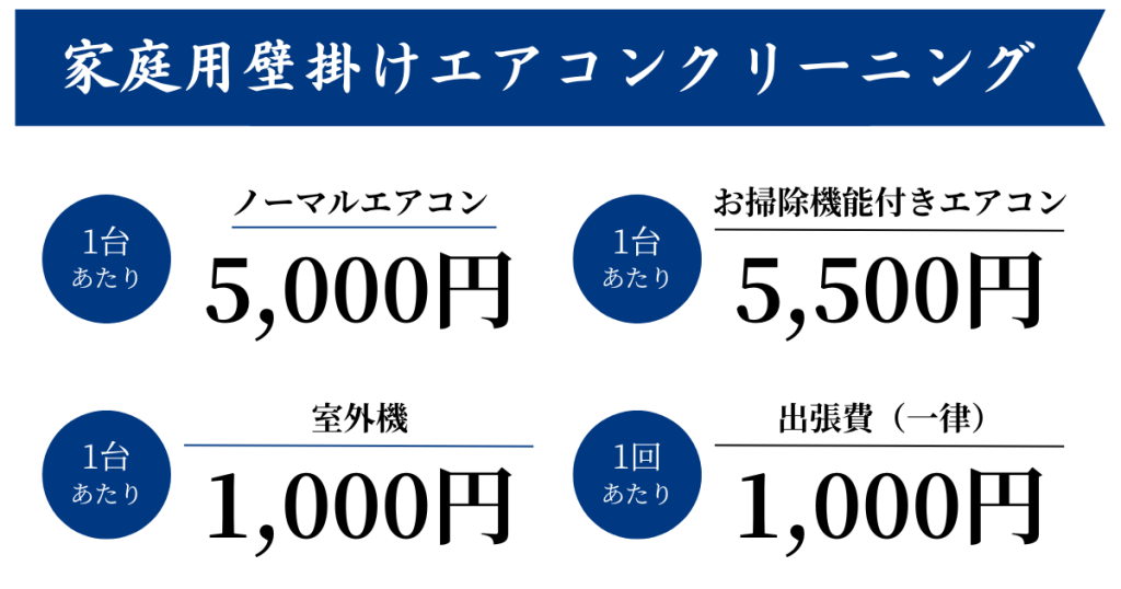 毎年メンテナンスしやすい価格帯で、出張費は一度のご依頼につき一律1,000円のみです。(一部地域を除く)